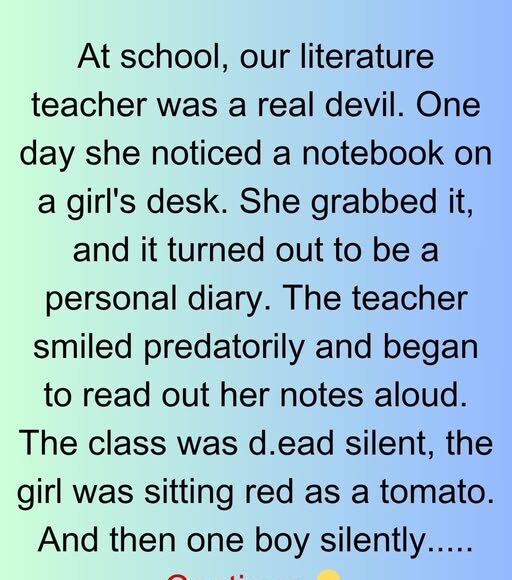At school, our literature teacher was a real devil. One day she noticed a notebook on a girl’s desk.