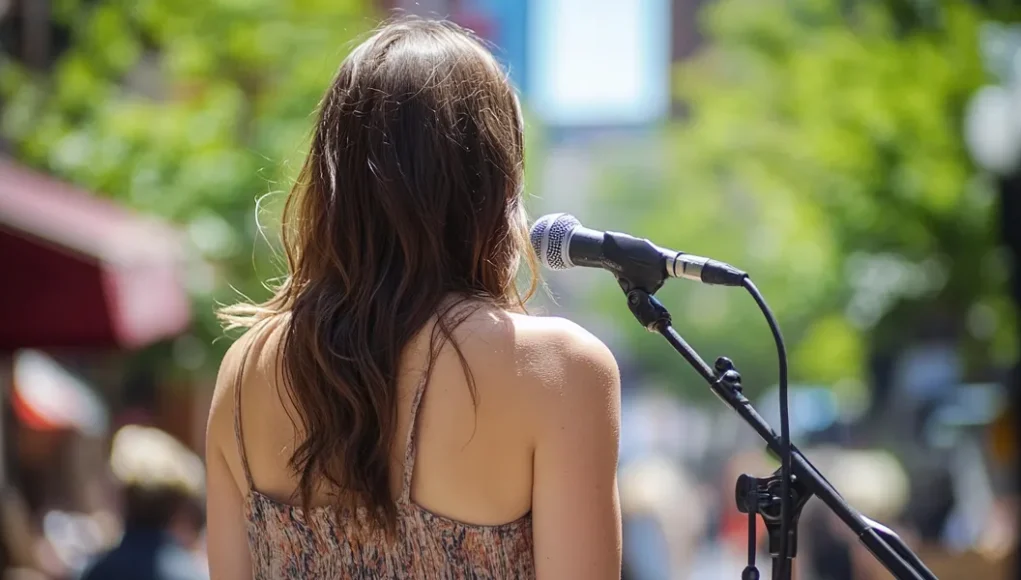 The song was clear as day, performed by a young woman across the plaza, eyes closed, smiling serenely.