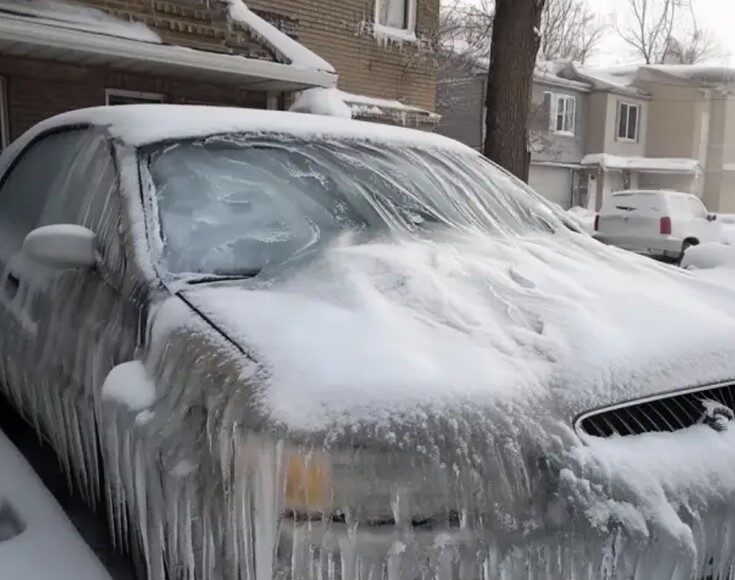 My car was completely encased in ice; thick, clear ice that looked nothing like natural frost.