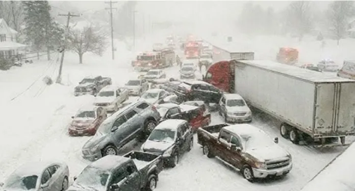 Aksidenti ndodhi në korsitë perëndimore të autostradës I-70 pranë Terre Haute-s, shkaku i reshjeve të borës.