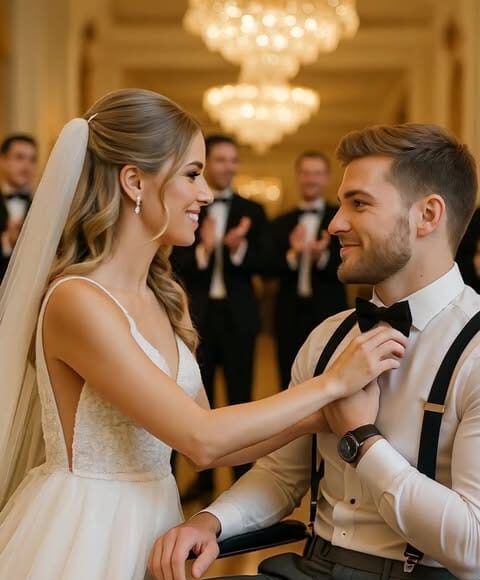 Ve sonra, törende beklenmedik bir şey oldu. İlk dansımızda, tekerlekli sandalyesiyle beni müziğe göre döndürdü. Sonra mikrofonu aldı ve titrek bir sesle: