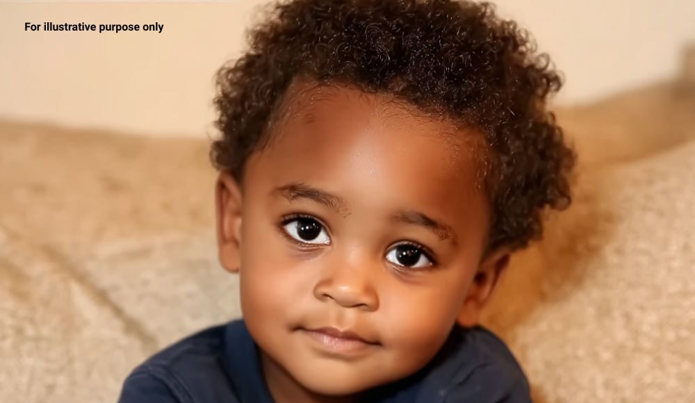 As she was going through the documents, a child, around three years old, paid her attention.